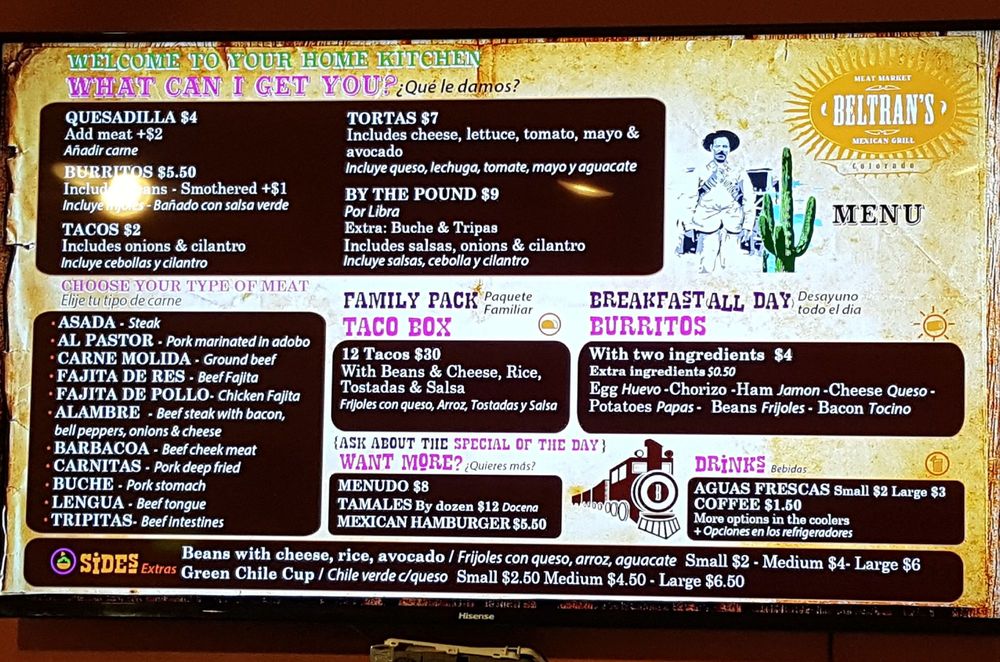 Welcome to Beltran's Meat Market, a hidden gem nestled in Northglenn, CO, where authentic Mexican cuisine meets a delightful market experience. This family-friendly eatery offers a vast selection of dishes, making it an ideal spot for both casual dining and group gatherings. With delectable options like the Family Pack Taco Box—twelve mouthwatering tacos served with beans, cheese, rice, chips, and salsa—there’s something for everyone!